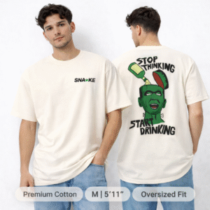 SNAYKE Oversized T-Shirt | “Stop Thinking Start Drinking” Back Print | Streetwear Statement