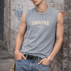 SNAYKE Men’s Sleeveless Grey Graphic T-Shirt | Anime Back Print | Regular Fit Streetwear Casual Wear