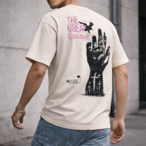 SNAYKE Off-White Oversized T-Shirt | The Great Escape Back Print | Streetwear Statement