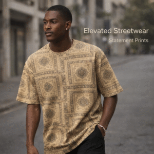 SNAYKE Ornamental Print Oversized T-Shirt | Premium Beige Streetwear Essential