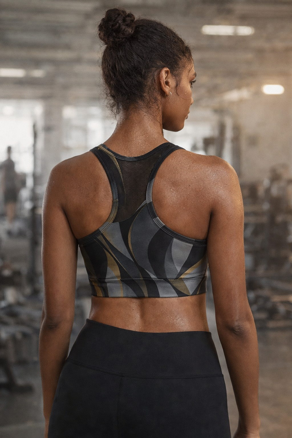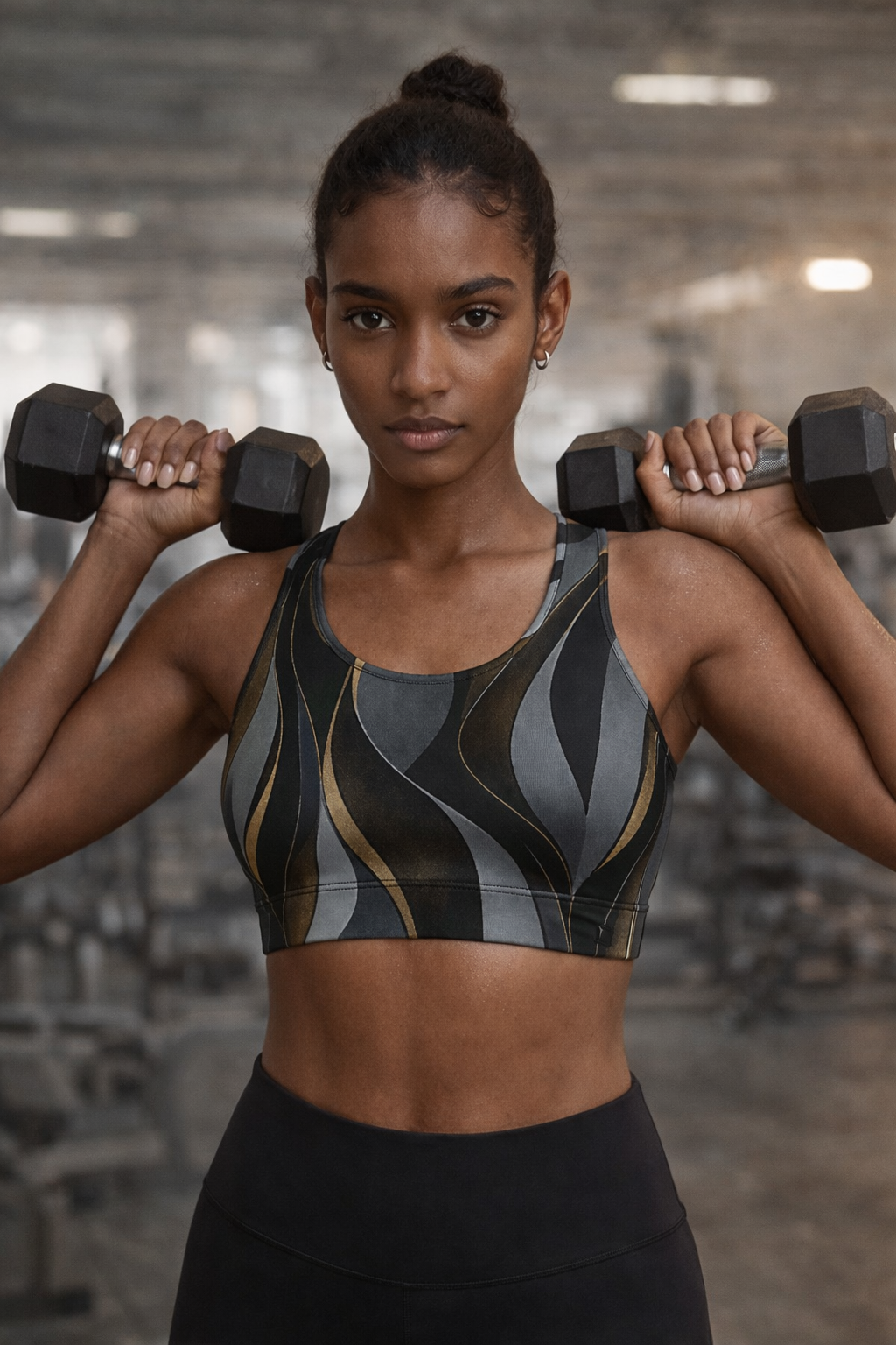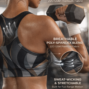 Fabric: Crafted from a breathable poly-spandex blend with a 220 GSM weight, this sports bra offers a perfect balance of stretch, support, and moisture-wicking comfort.