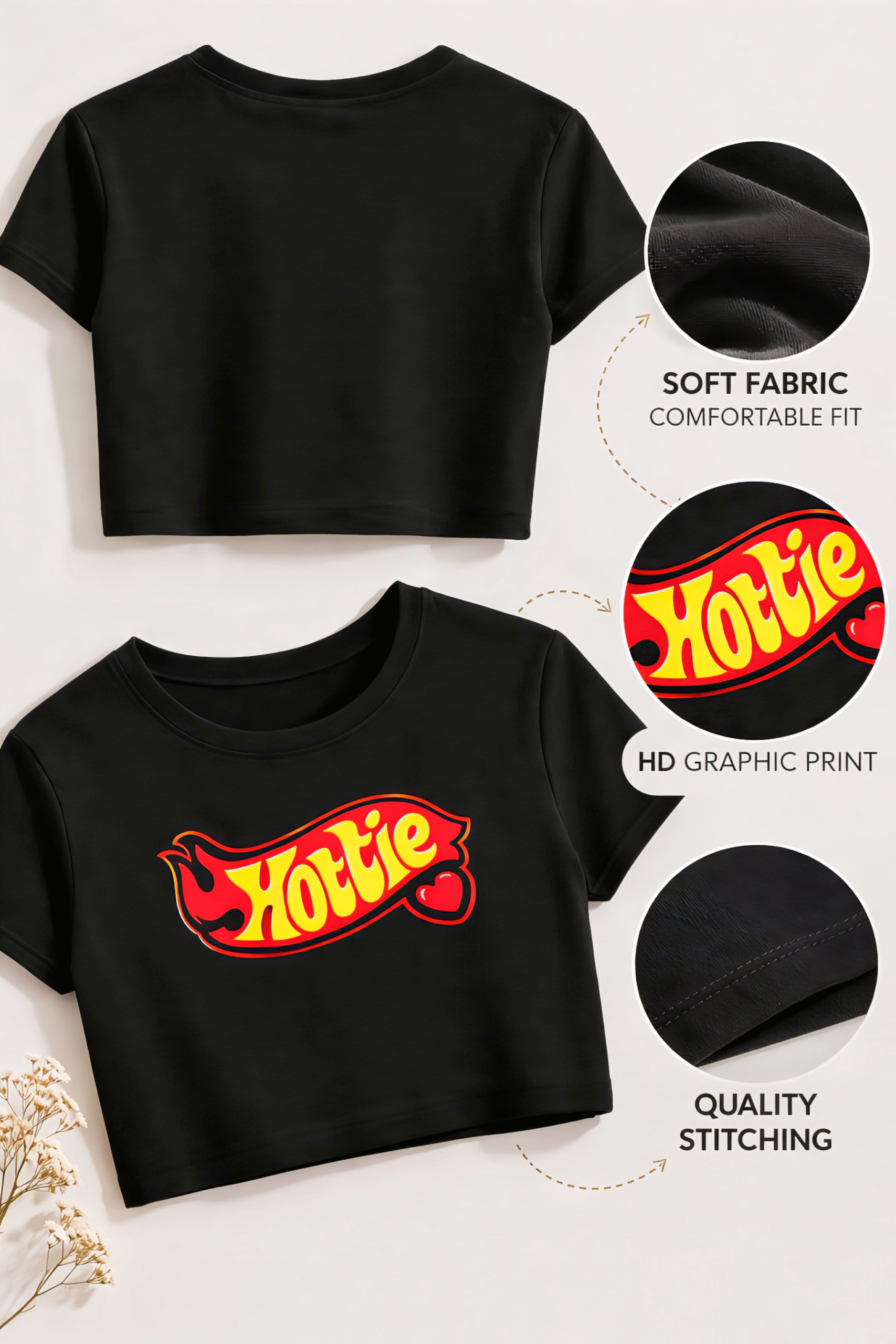 Fit & Style: Designed for a flattering cropped look, this baby tee is the go-to essential for Gen Z wardrobes—effortlessly cool, versatile, and easy to pair.