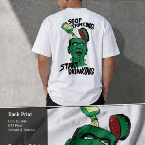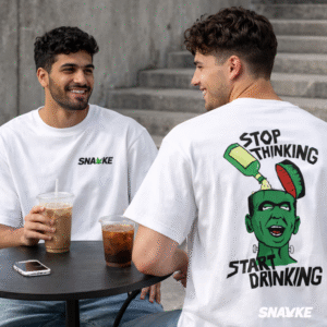 Be the first to review “SNAYKE Oversized T-Shirt | “Stop Thinking Start Drinking” Back Print | Streetwear Statement”