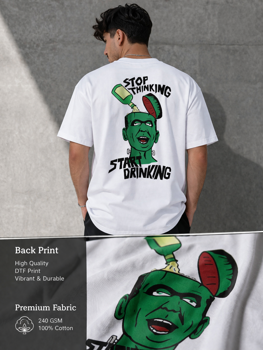 SNAYKE Oversized T-Shirt | “Stop Thinking Start Drinking” Back Print | Streetwear Statement