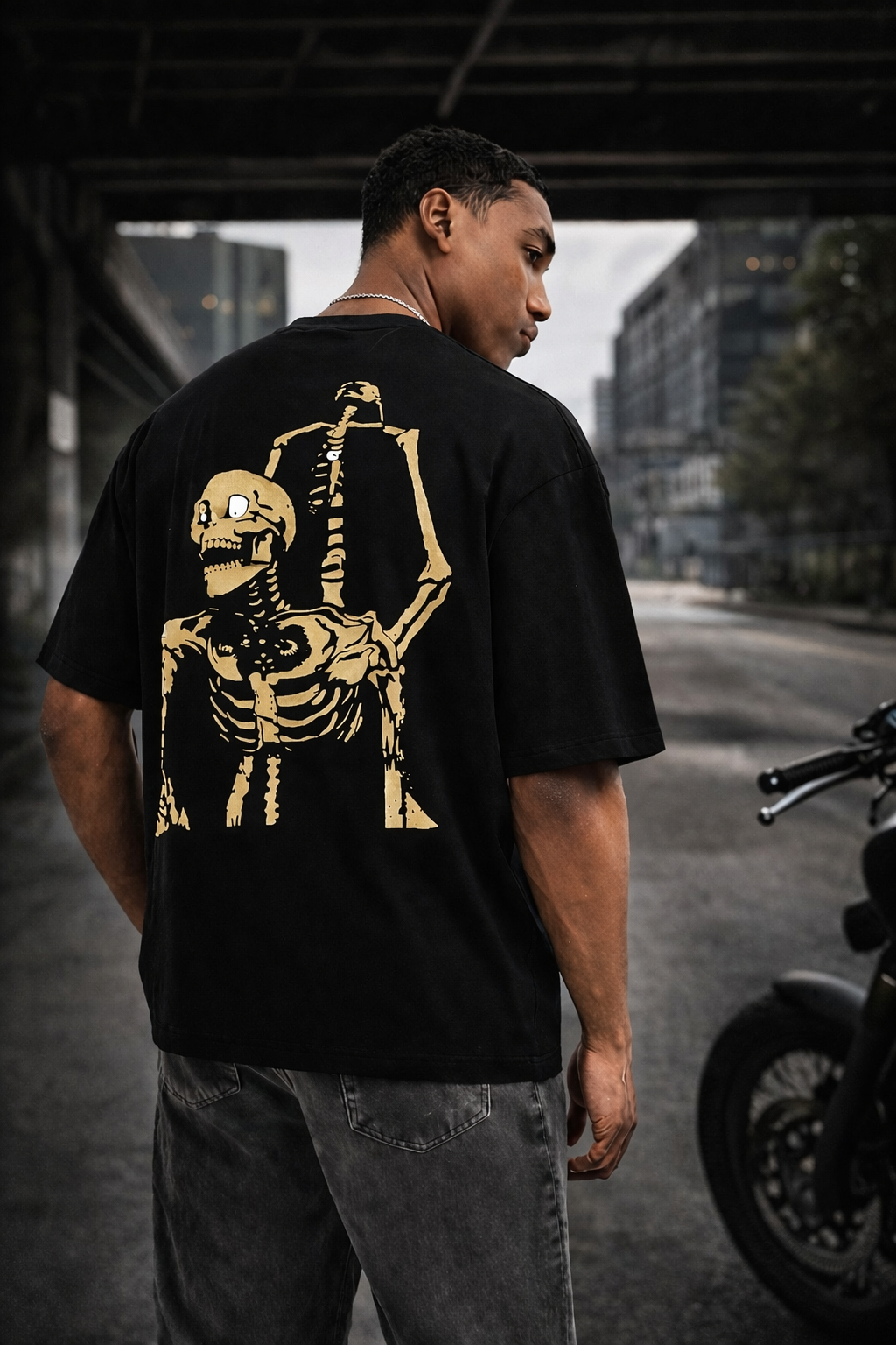 SNAYKE Oversized T-Shirt | Skeleton Graphic Back Print | Streetwear Statement