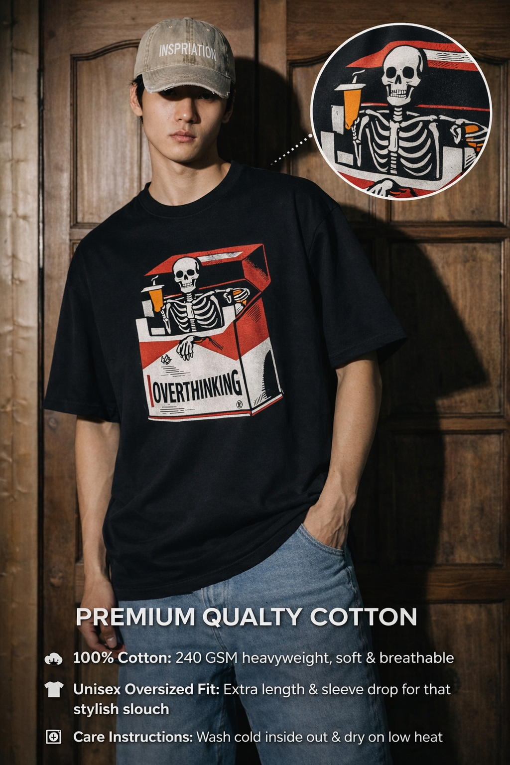 Fabric: 100% cotton with 240 GSM heavyweight yet breathable for that perfect oversized drape.